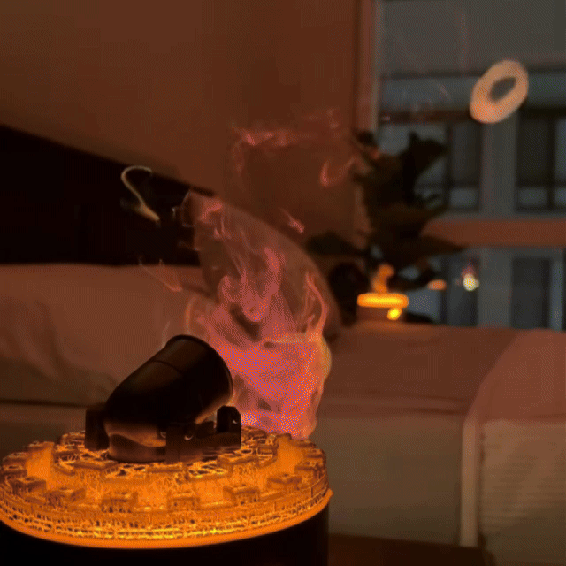 The device releases mist in a powerful burst, mimicking a cannon firing smoke, creating a visually dynamic and exciting experience